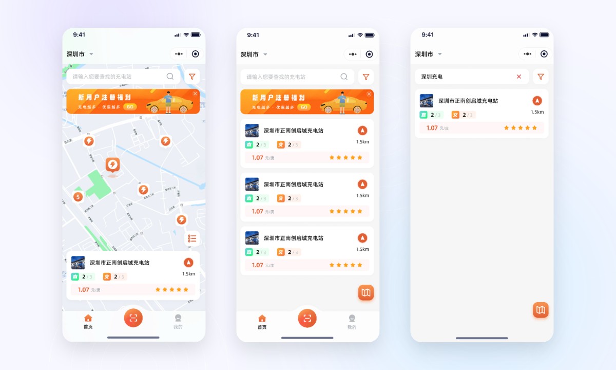 首页提供地图与列表两种浏览模式,并依据用户实时位置智能推荐附近站点,便于用户快速选择所需服务。