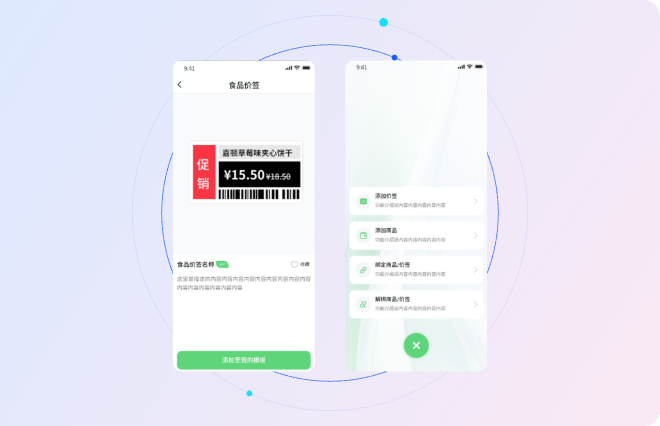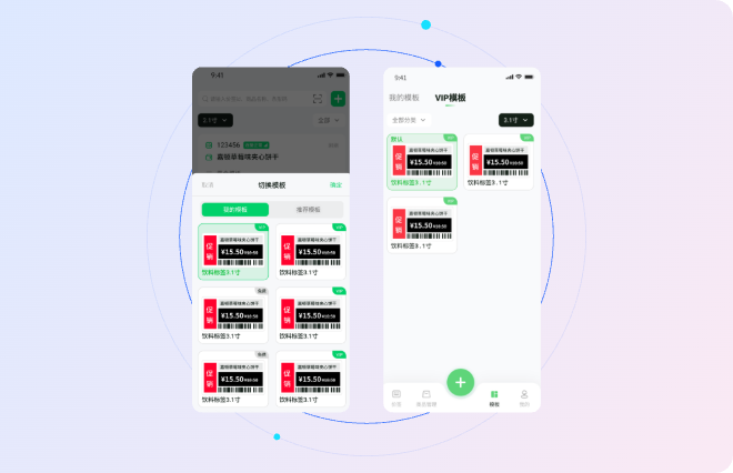 根据不同的产品展示需求,用户可以在APP上切换不同的价签模版。