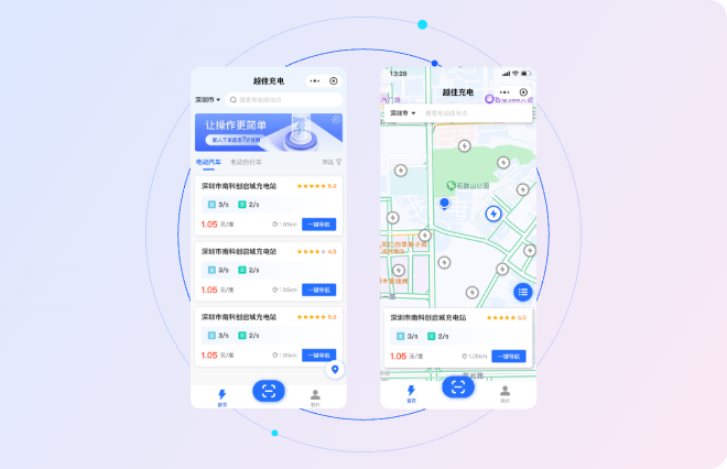 列表/地图切换:充电站列表与地图可切换,方便用户按需查看,提升使用便捷度