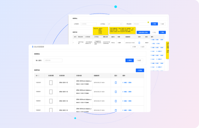 文章/科普管理、用户管理、招聘信息管理