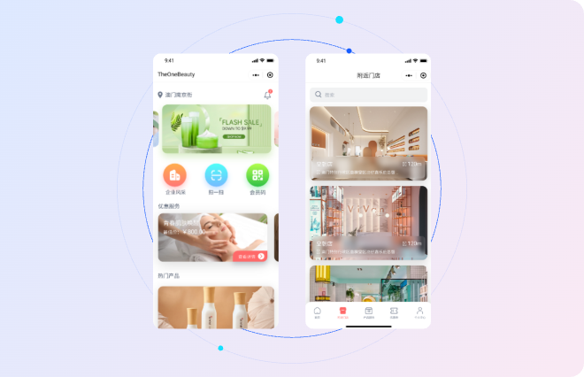 根据用户定位显示附近门店,包括门店地址等信息,可一键导航。