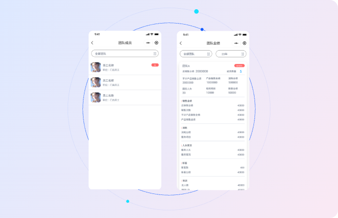 详细呈现团队销售业绩、产品销售业绩、销售次数等数据。